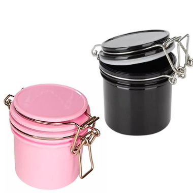 O Pote Hermético para Armazenamento de Cola de Cílios acomoda até 3 Frascos de cola com segurança as protegendo da Luz, Umidade e Temperatura exterior.